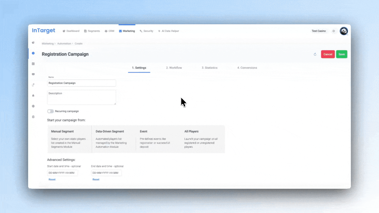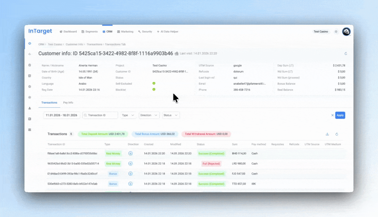 Stop losing players to generic tools. InTarget consolidates player data, automates personalized campaigns, and drives measurable revenue growth — all in one platform designed exclusively for online casinos, sportsbooks, and betting operators